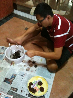 Cookie baking session with dearly!!! Impress with our final product... It's his first time baking! He does look forward for more with me... =DD Me toooooo~~~!!!